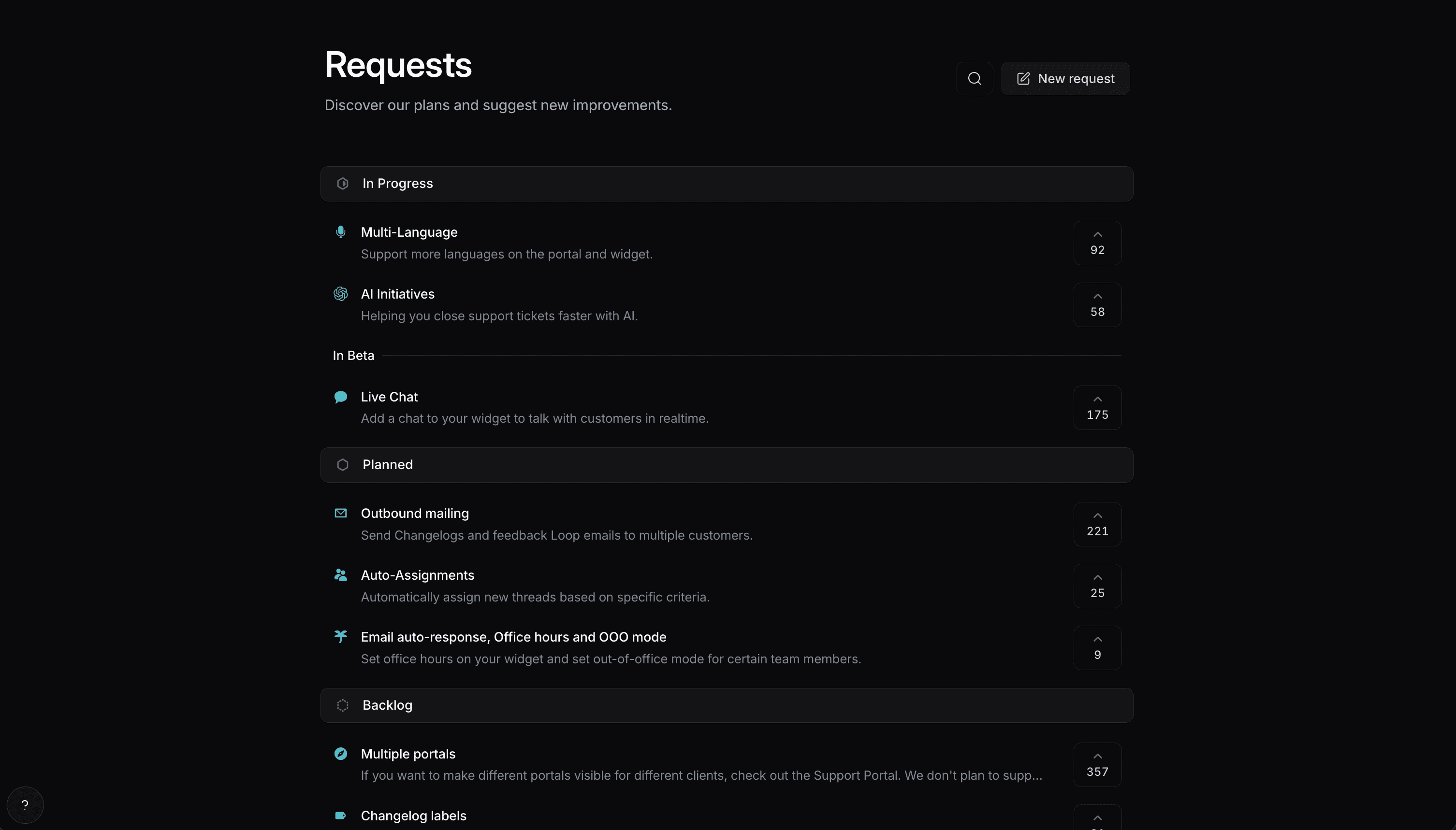 Seamlessly combine support with a feature request portal, Changelog, and help center in one place.