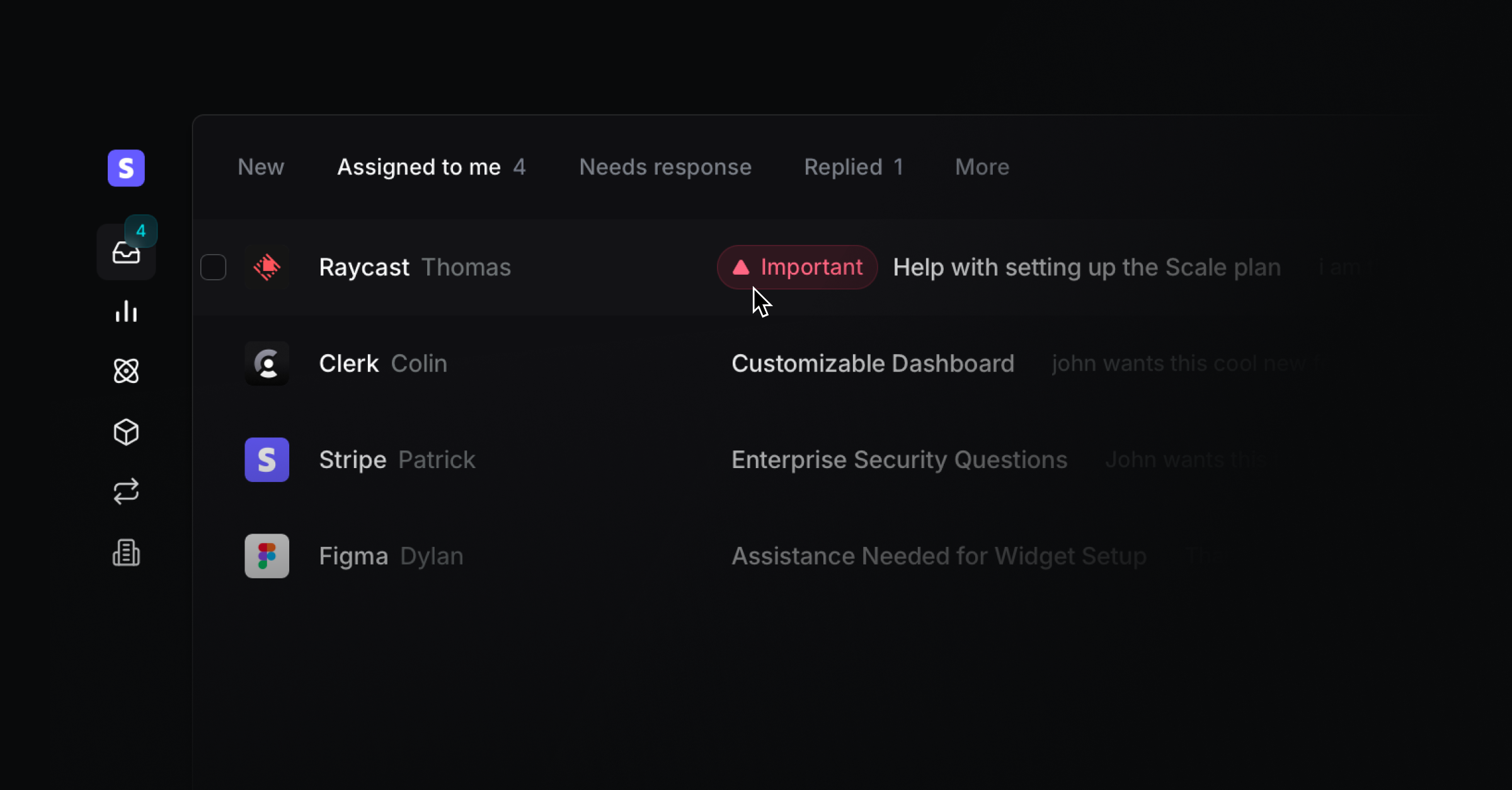 We improved the readability and flow of the support inbox. You can now spot urgent or overdue conversations faster, and view the most recently completed Linear issue title immediately to help you follow up. We removed the closed loop tab and moved those conversations into the other inboxes, and we changed the “All” tab into “Replied” to help you spot waiting conversations faster.