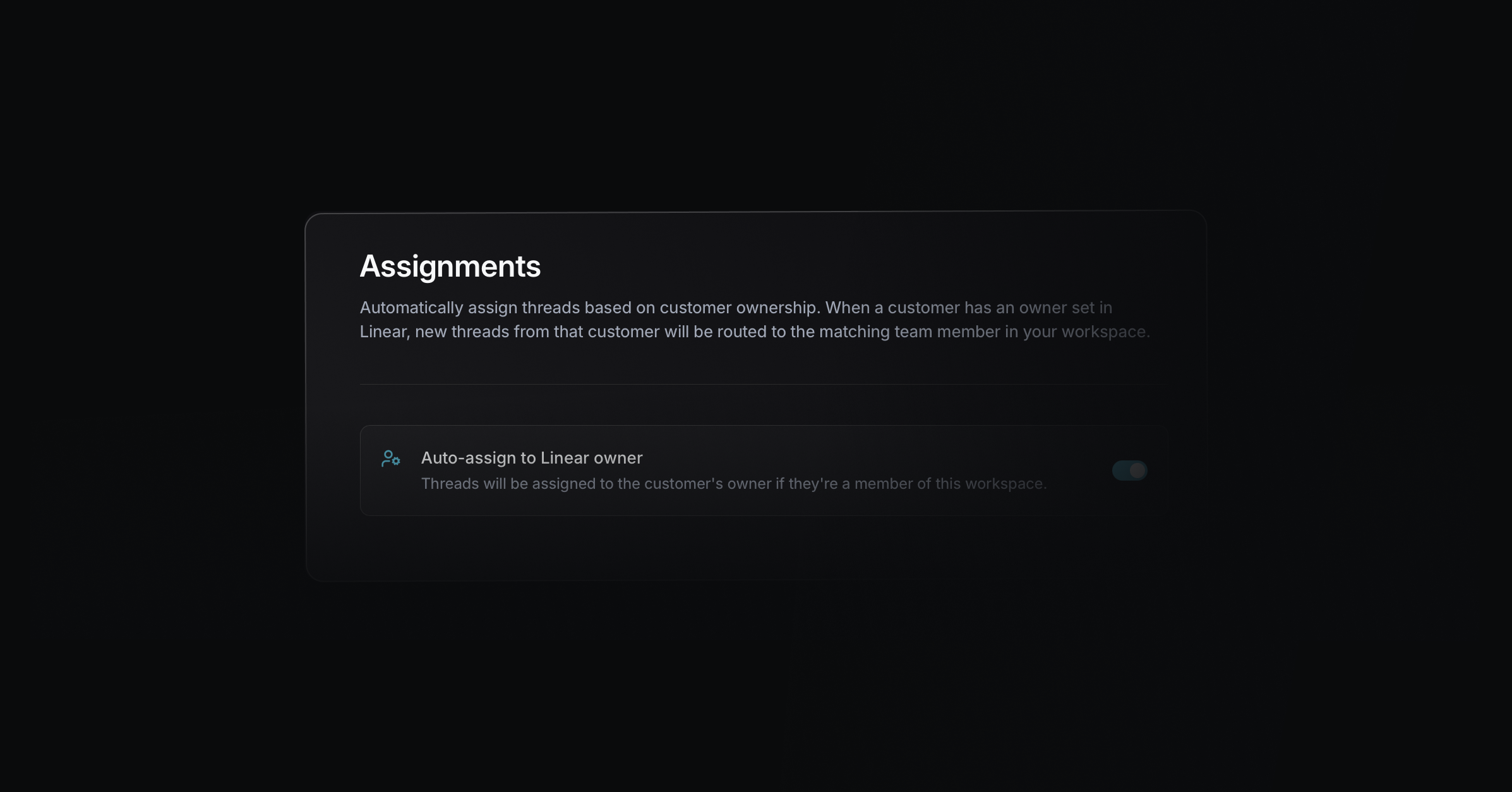 Route new conversations to the right owner automatically. This helps you respond faster and keeps ownership clear. Go to Settings → Assignments to configure.
